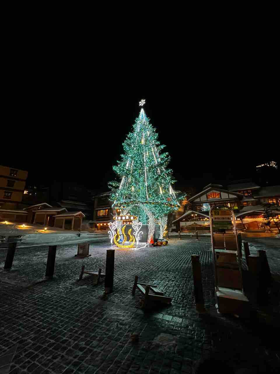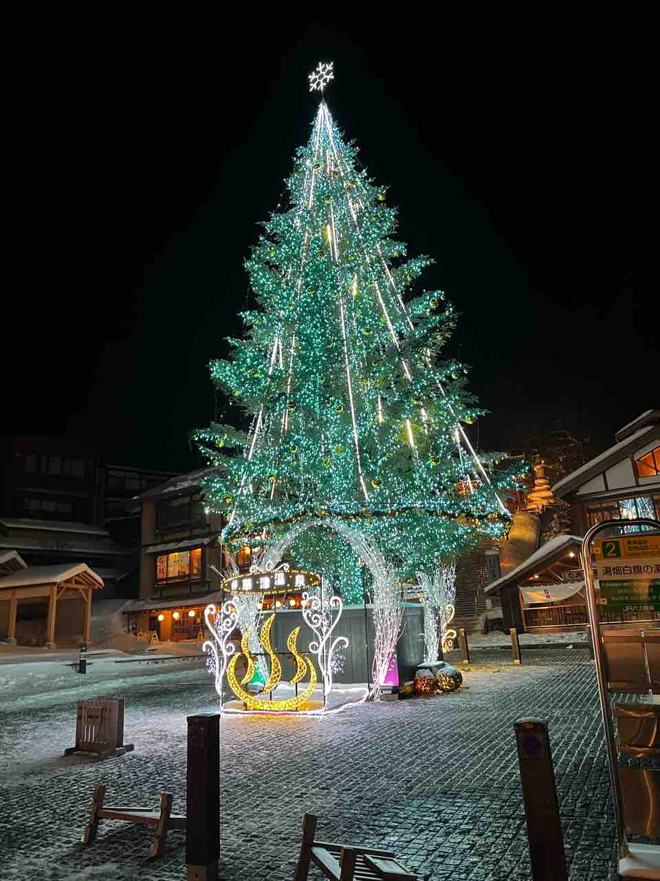 この冬初の湯畑ツリーの投稿です。