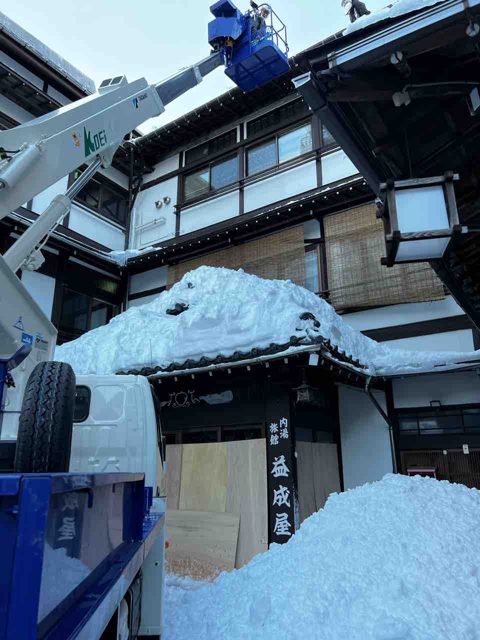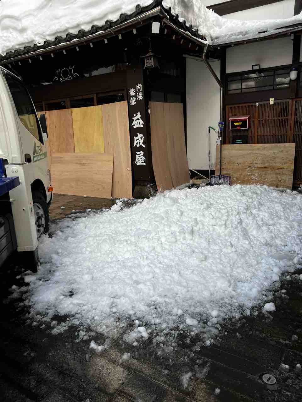 本日の作業は終わりました 2022 1/26 益成屋ブログ 2022年1月26日 屋根の雪下ろしは本日終える予定でしたが予想以上の雪の量で明日に持ち越しとなりました。 午後は玄関上から始まりました。 午前中の雪の量はこんなものでした。 午後の作業が始まったら一気に落とされる雪の量が増えました。 お客様が出入りする大玄関の横にうちの者が出入りする玄関がありますが雪が多すぎて出入り出来なくなってしまいました。 明日の午前中には片付けが終わりそうです。あまりの雪の多さに驚きました。これだけの量の雪が載っかっていたかと考えると早くに雪下ろしをしてもらえて安心しました。 益成屋ブログ シェアお願い致します♪ URLをコピーしました! URLをコピーしました! 屋根の雪下ろしをしてもらっています 雪下ろしが終わりました 関連記事 雪混じりの雨が降っています 2025年11月3日 薄曇りの空模様です 2025年11月2日 晴れて日差しがあります 2025年11月1日 どんよりと曇り空です 2025年10月31日 本日も良いお天気です 2025年10月30日 本日も青空が広がっています 2025年10月29日 本日も良いお天気です 2025年10月28日 また良いお天気になっています 2025年10月27日