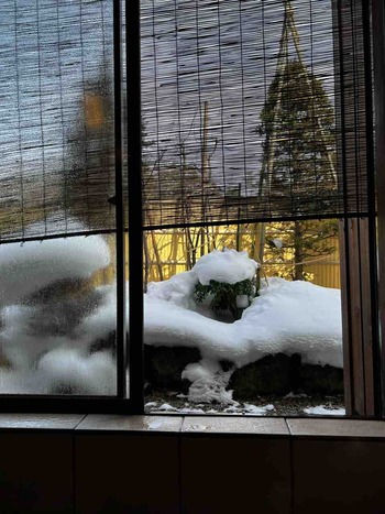 気温は当館玄関先の気温計でもう少しで0℃とまだ氷点下のままです。