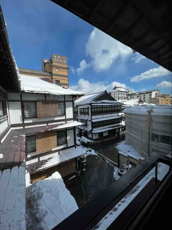 気温は当館玄関先の気温計で-2.5℃と低く晴れていますが外は空気がひんやりとしていて暖かさは感じられませんでした。