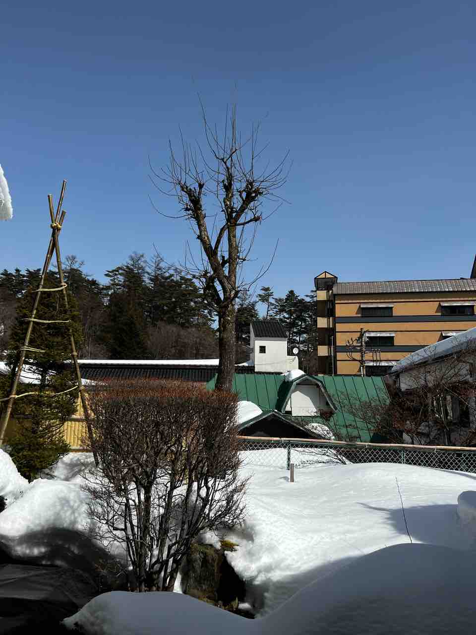 気温は当館玄関先の気温計で8℃まで上がっています。