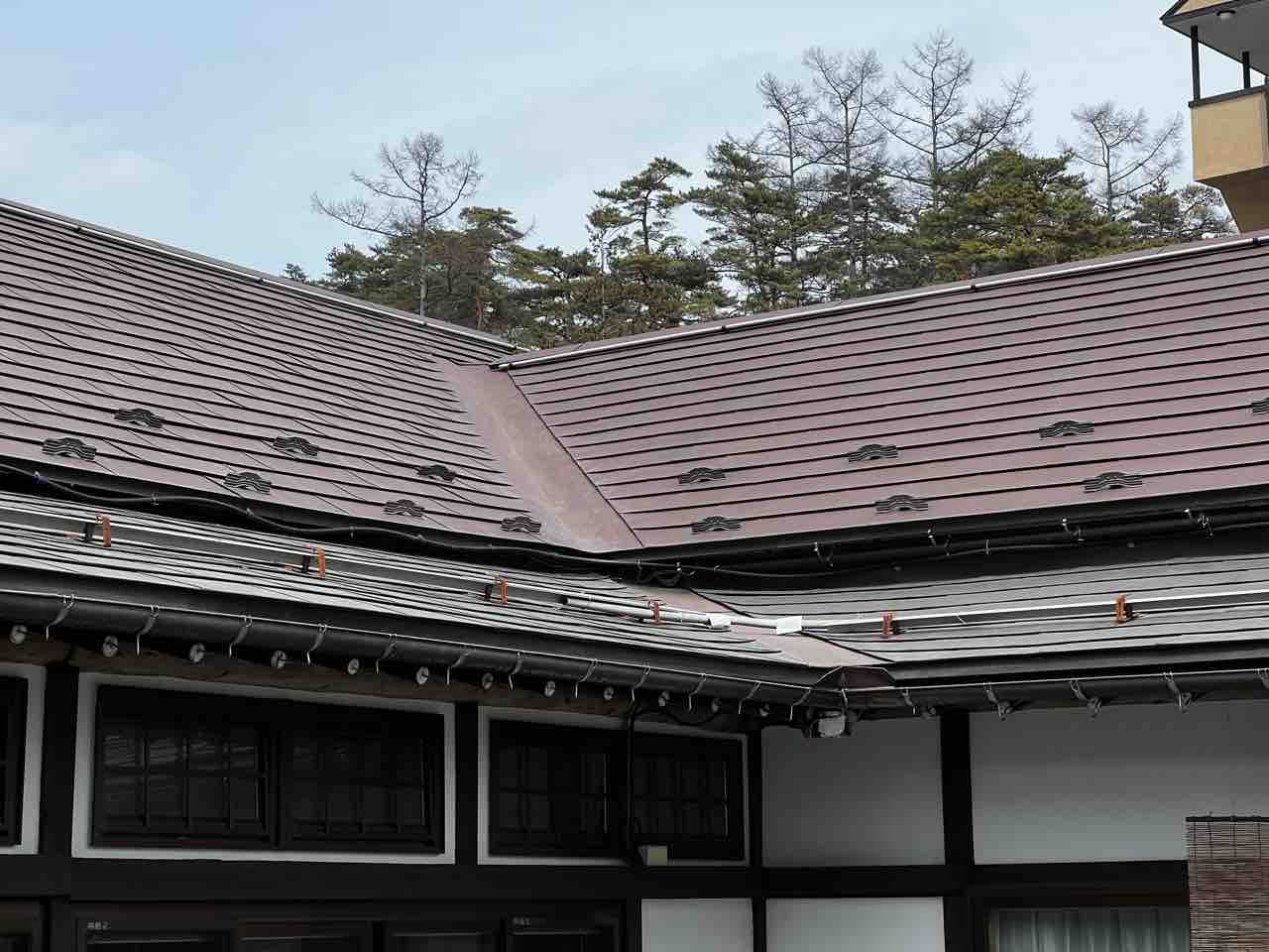 正面の大屋根の雪もここ数日の暖かさで全て溶けて無くなってくれました。残るは日当たりの悪い大屋根北側と玄関上の瓦屋根となりました。