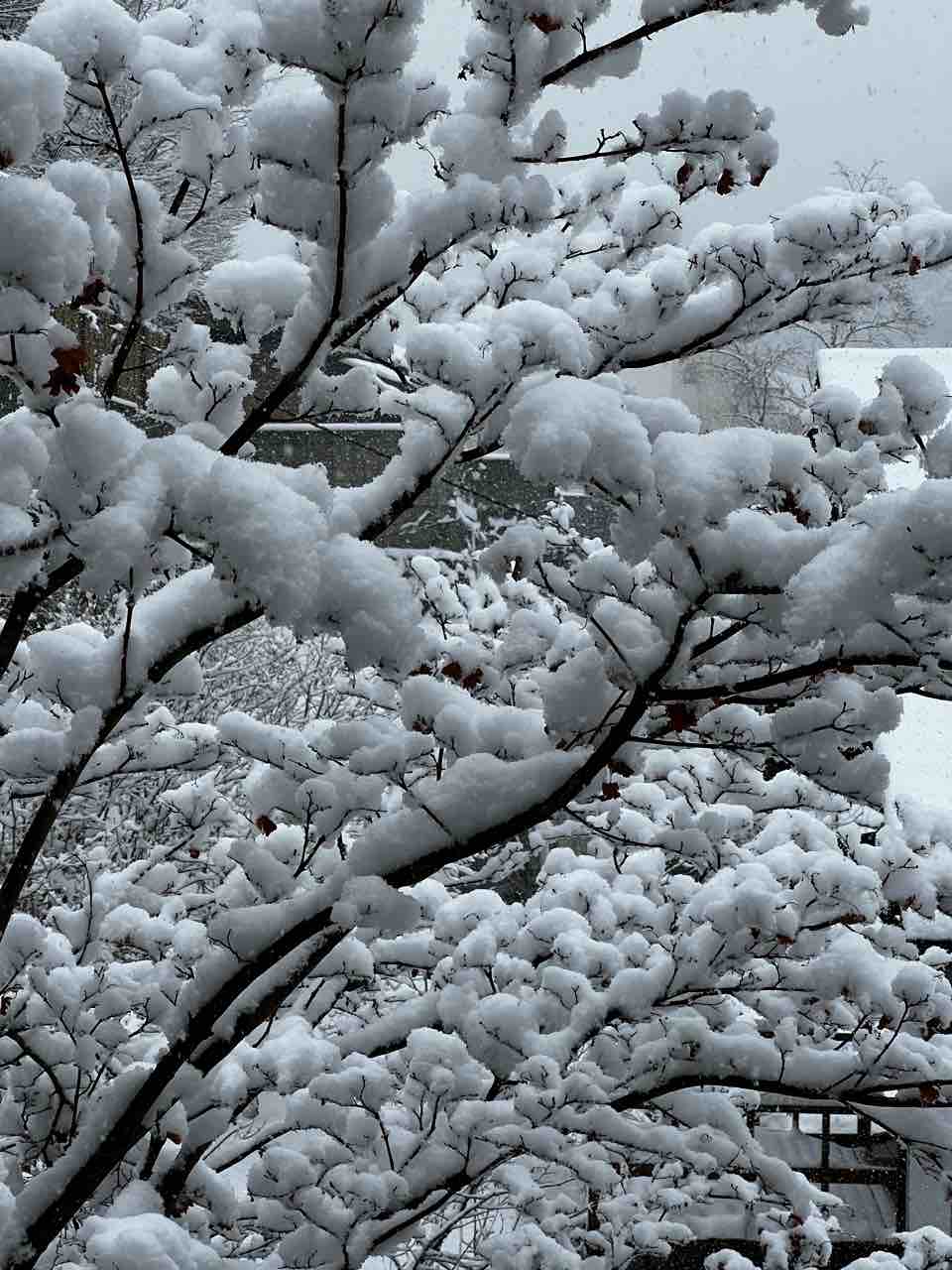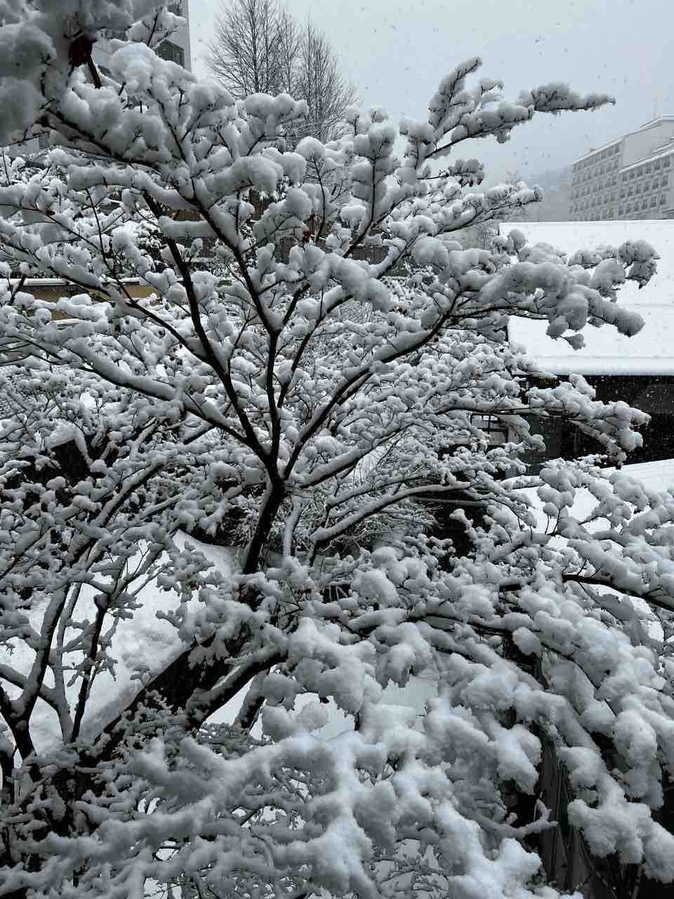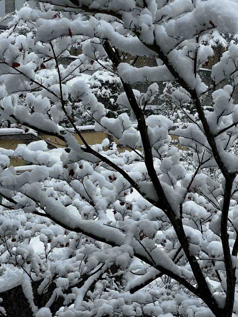 白い花が咲いたような木々は綺麗ですが早く止んでもらいたいものです。