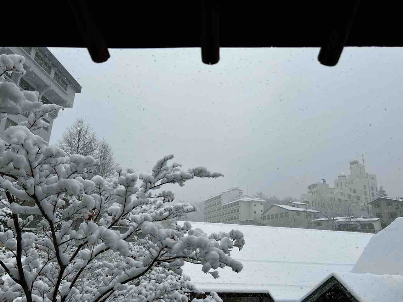 気温は当館玄関先の気温計で2℃まで届かずまたまた寒くなっています。