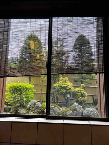 お天気が悪く貸切風呂庭の植木もしばらく日差しを浴びていません。