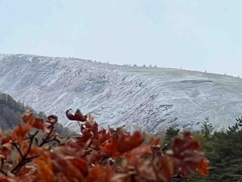 貸切風呂廊下から撮りましたが山が白くなっています。
