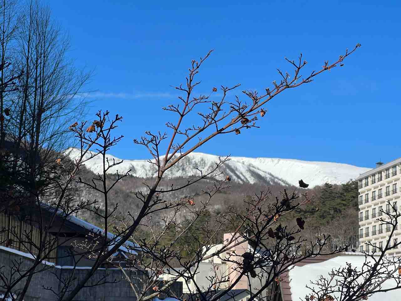 気温は当館玄関先の気温計で+7℃近くまで上がっています。