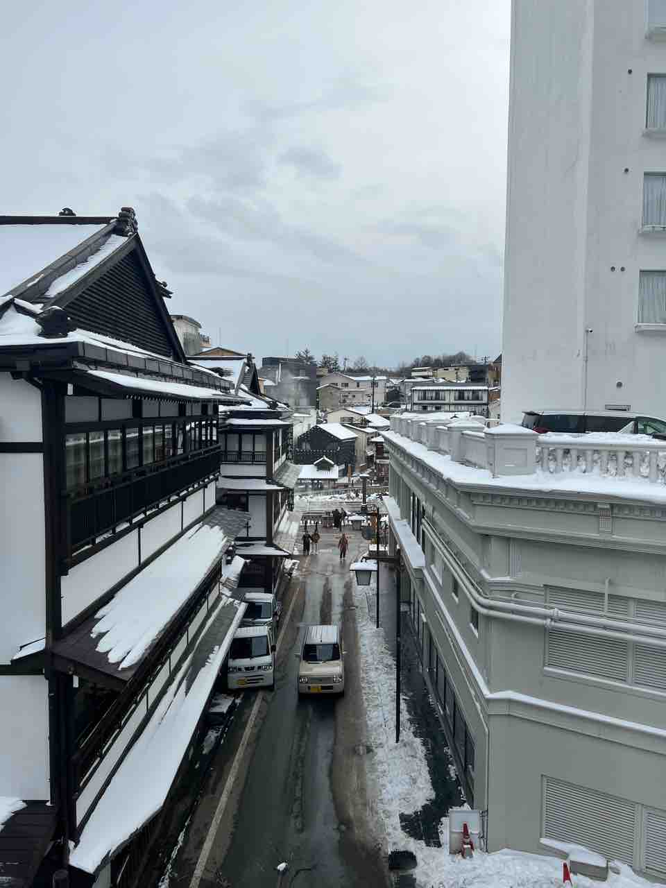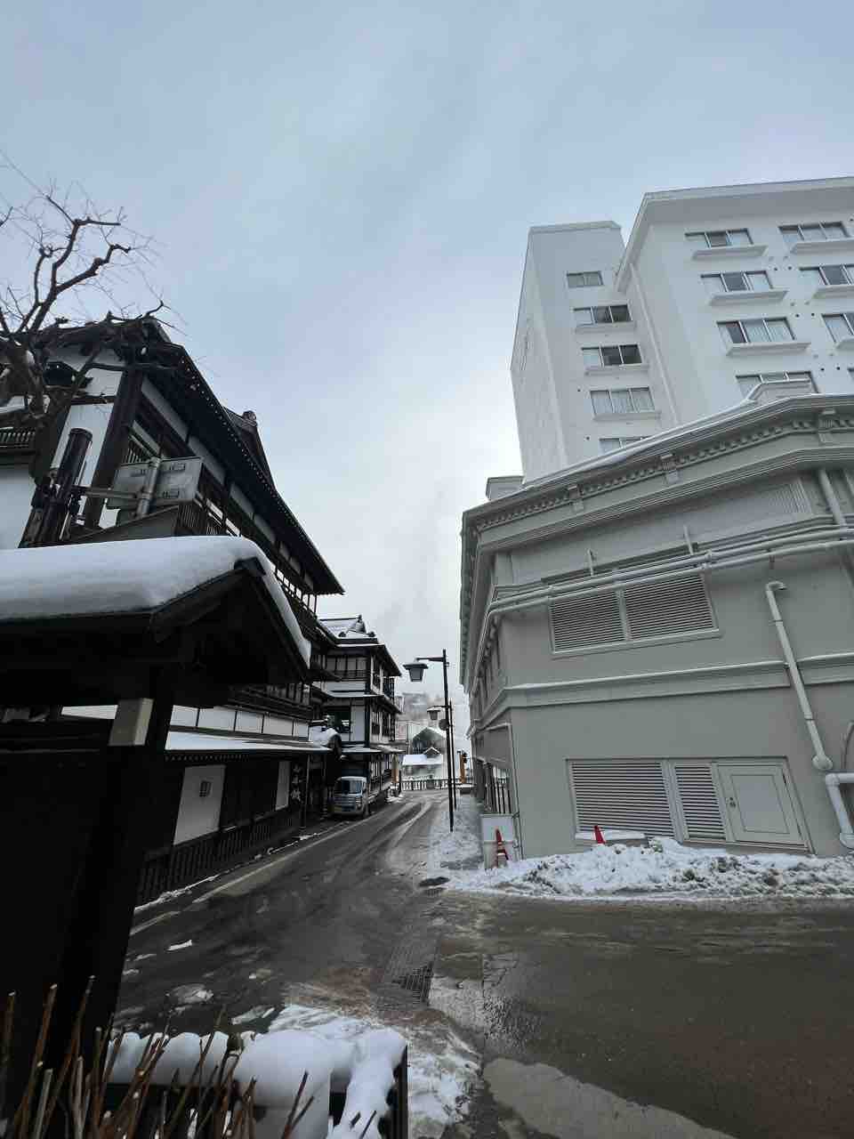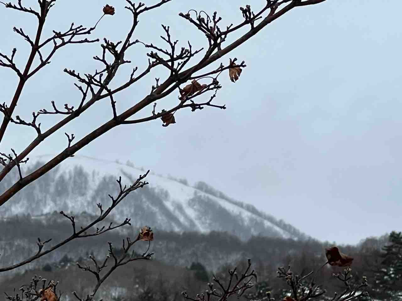 本日はまたお天気が悪く厚い雲に覆われてどんよりと曇り空です。当館周辺の道路の雪はだいぶ溶けましたが路肩や所々に凍った雪が残っていますので十分ご注意ください。
