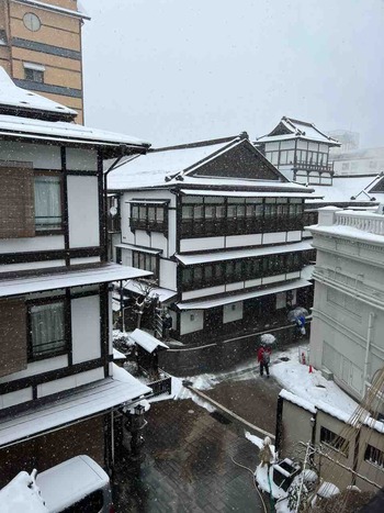 気温は当館玄関先の気温計で-1.5℃と朝から上がらずです。驚くほどは冷え込んでいません。