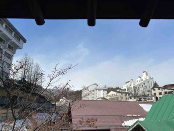 気温は当館玄関先の気温計で+1℃と冬の寒さに戻りました。