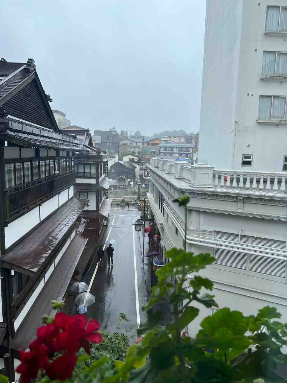 気温は当館玄関先の気温計で18℃とぐっと下がっています。平野部からお越しのお客様にとっては肌寒く感じるかもしれませんので羽織る物を一枚多めにお持ちいただけるとよろしいかと思います。