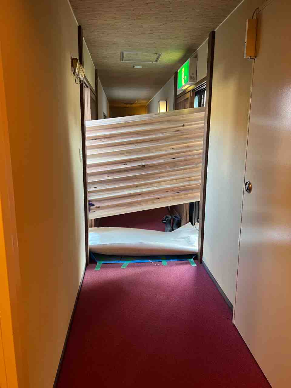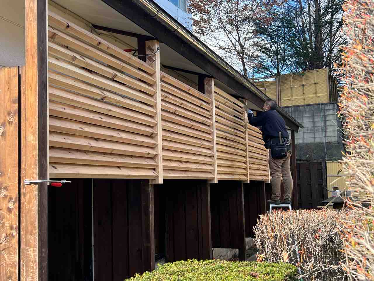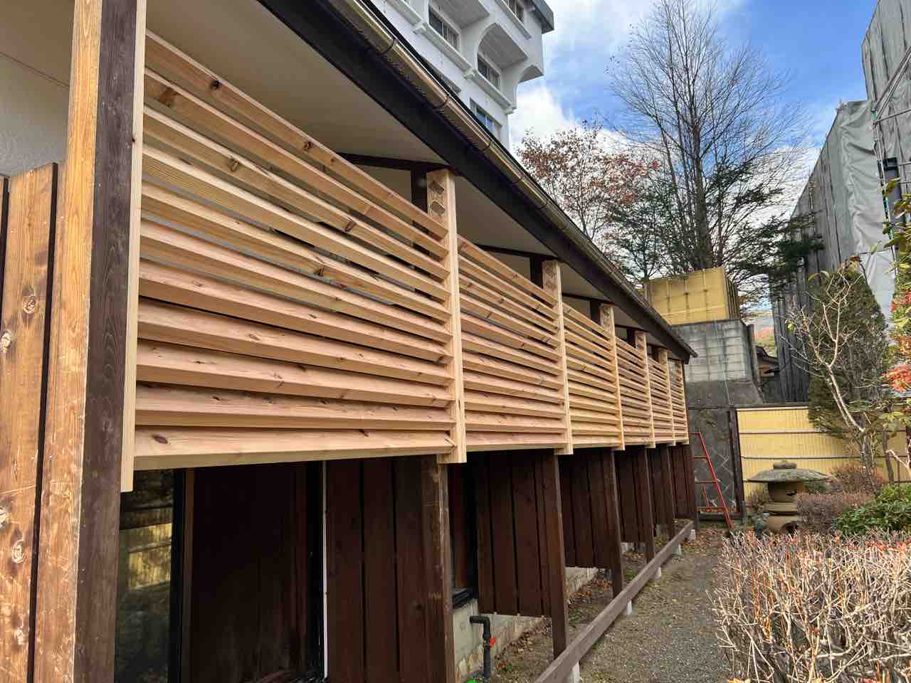 貸切風呂のガラリを取り付けてもらいました 2023 11/15 益成屋ブログ 2023年11月15日 本日は朝から大工さんと職人さんが来て貸切風呂のガラリ(目隠し)を取り付けてくれました。全てのすだれを外しました。 造ったガラリを搬入です。 一ヶ所づつ取り付けてもらいました。 何も無いとせいせいして良いのですが隣の工事現場から丸見えになってしまいます。 5人がかりで全て取り付けてもらいました。 ガラリを6か所に取り付けて重たくなりましたので束石も設置してもらいました。 今まではすだれとフィルム貼りで大変申し訳ございませんでした。これでガラス窓上半分はガラリの目隠しで下半分は外側からは反射して中が見えない特殊なフィルムを貼ってありますので隣接地での工事現場から貸切風呂内部が見えなくなりました。 ご宿泊のお客様にはご迷惑をおかけして申し訳ございませんが何卒ご了承くださいますようお願い申し上げます。とりあえず一安心できます。 益成屋ブログ シェアお願い致します♪ URLをコピーしました! URLをコピーしました! 本日も穏やかな晴天です 湯畑源泉の貸切風呂のお湯を入れ換えました 関連記事 曇ってしまいました 2025年11月5日 晴れて良いお天気です 2025年11月4日 雪混じりの雨が降っています 2025年11月3日 薄曇りの空模様です 2025年11月2日 晴れて日差しがあります 2025年11月1日 どんよりと曇り空です 2025年10月31日 本日も良いお天気です 2025年10月30日 本日も青空が広がっています 2025年10月29日