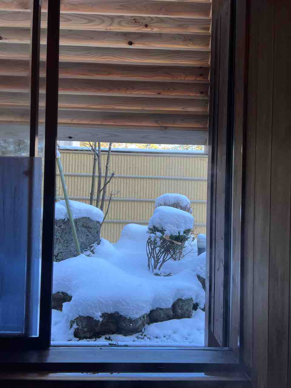 気温は当館玄関先の気温計で1℃まで上がっています。昨夜から今朝にかけては強烈な冷え込みでした。
