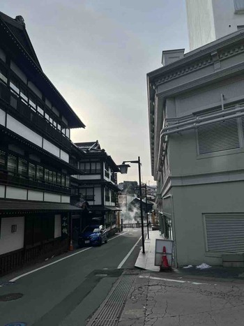 気温は当館玄関先の気温計で5℃です。